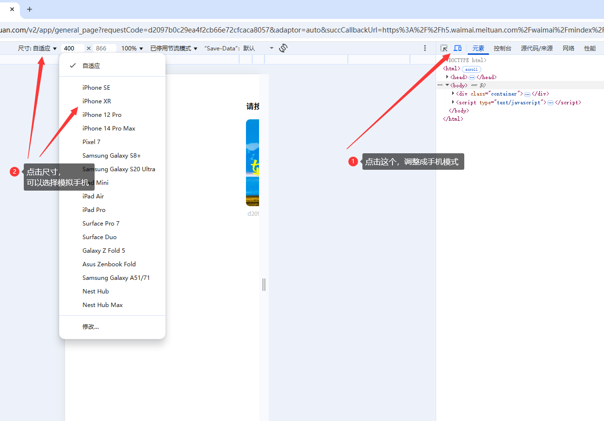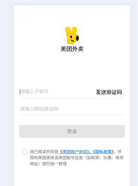 打开页面 https://h5.waimai.meituan.com/waimai/mindex (通过点击查询后,系统自动打开的网页,进行登录)